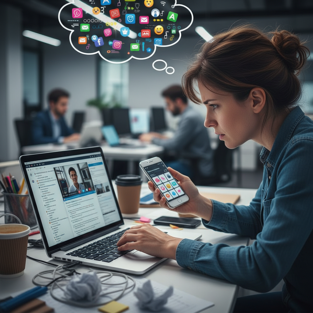Twój mózg nigdy nie był ewolucyjnie przygotowany na bombardowanie informacjami. Social media, powiadomienia, e-maile – każdy z tych bodźców to dla mózgu nowy impuls do przetworzenia. Według badań dra Adama Gazzaleya z University of California, nawet krótka ekspozycja na rozproszenia wydłuża powrót do głębokiej pracy aż o 25 minut (UC Berkeley, 2022). To właśnie dlatego po sprawdzeniu telefonu potrzebujesz czasu, by znów wejść w produktwny stan. Cyfrowe rozproszenia nie tylko przeszkadzają – zmieniają architekturę Twojej uwagi, co prowadzi do chronicznego zmęczenia i spadku kreatywności.