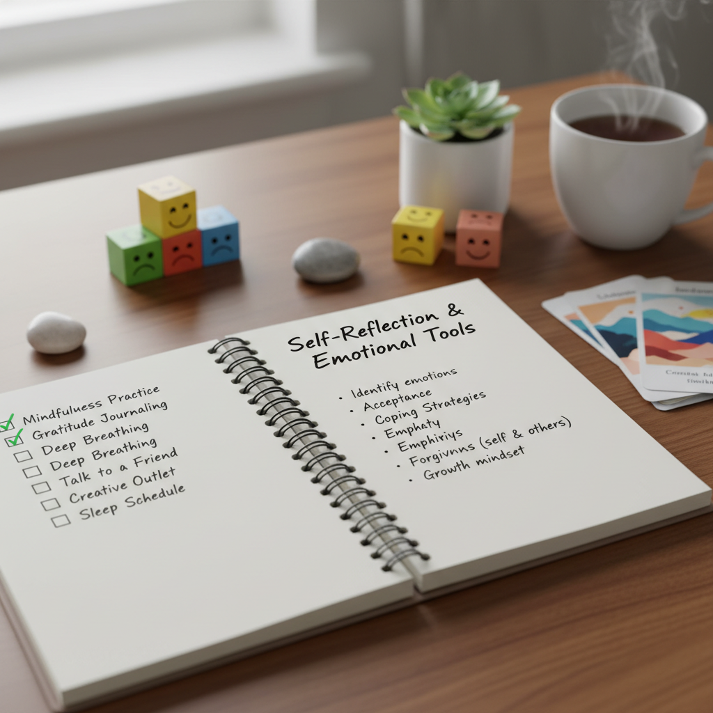 - Regularne korzystanie z narzędzi autorefleksji (np. dziennik emocji)