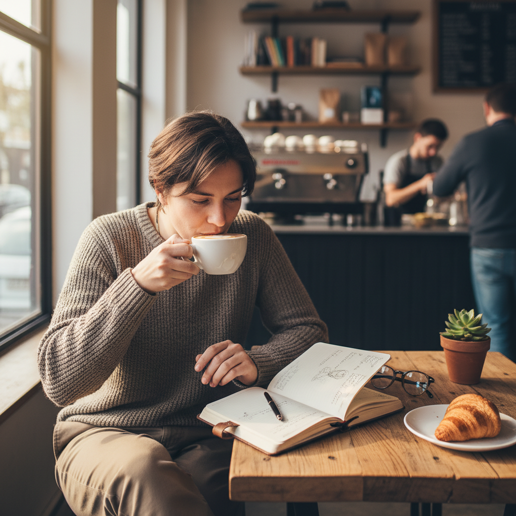 - Rytuał kawy lub herbaty o określonej porze – Pozwala osadzić się w rutynie, daje chwilę na refleksję.