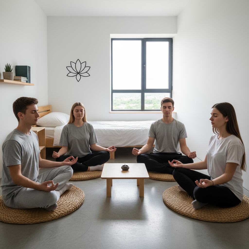 - Techniki relaksacyjne – medytacja, oddech, spokojna muzyka.