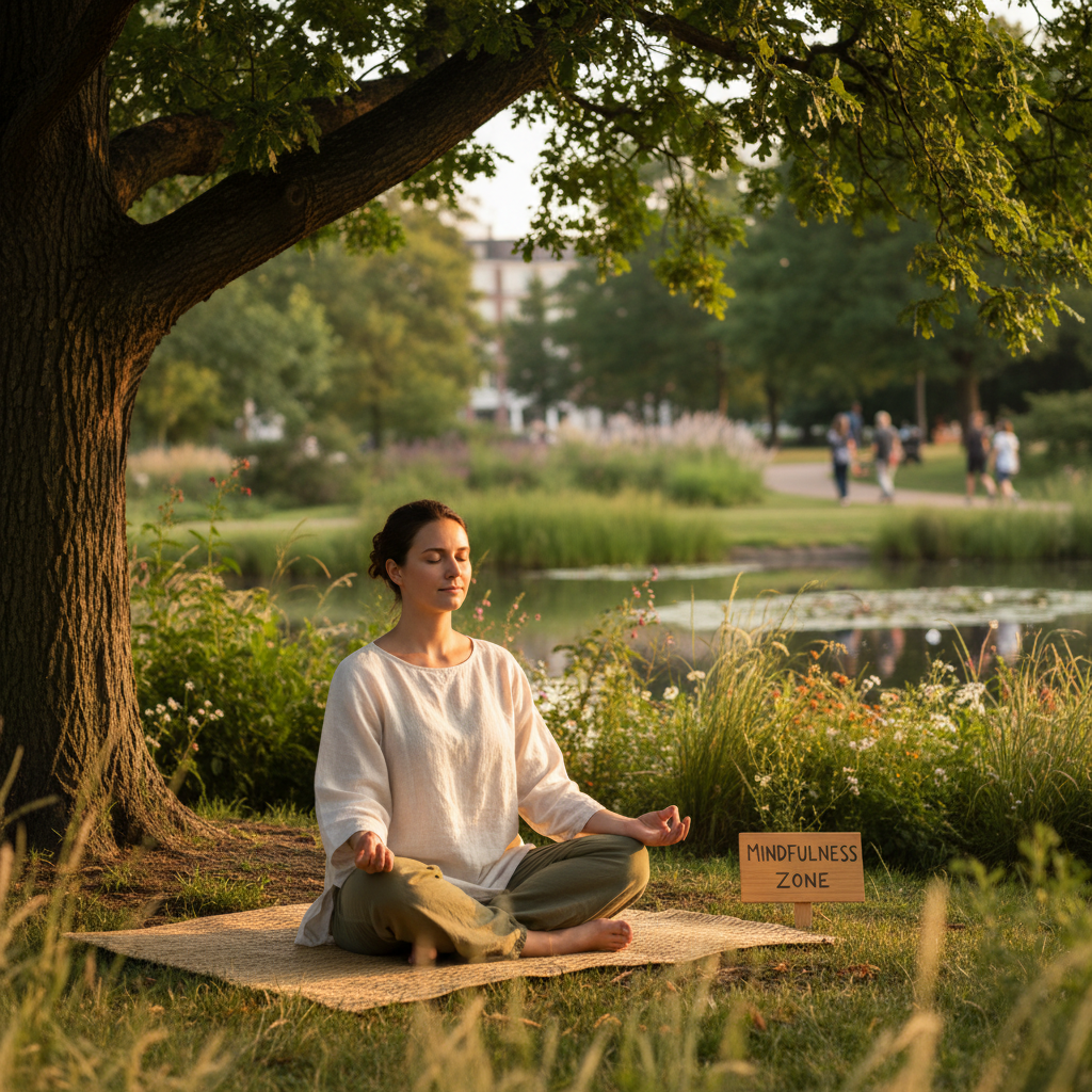 - Mindful walking: Uważny spacer połączony ze świadomym odczuwaniem każdego kroku i otoczenia.
